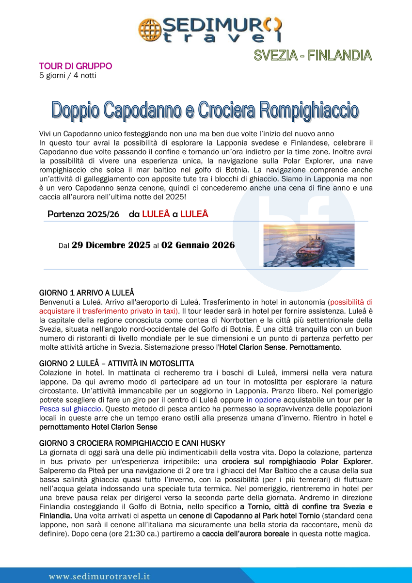 Doppio Capodanno e Crociera Rompighiaccio da Lulea 5 giorni
