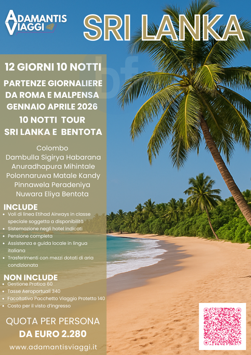 Tour Sri Lanka e Bentota - 12 Giorni 10 Notti Gennaio Aprile 2026