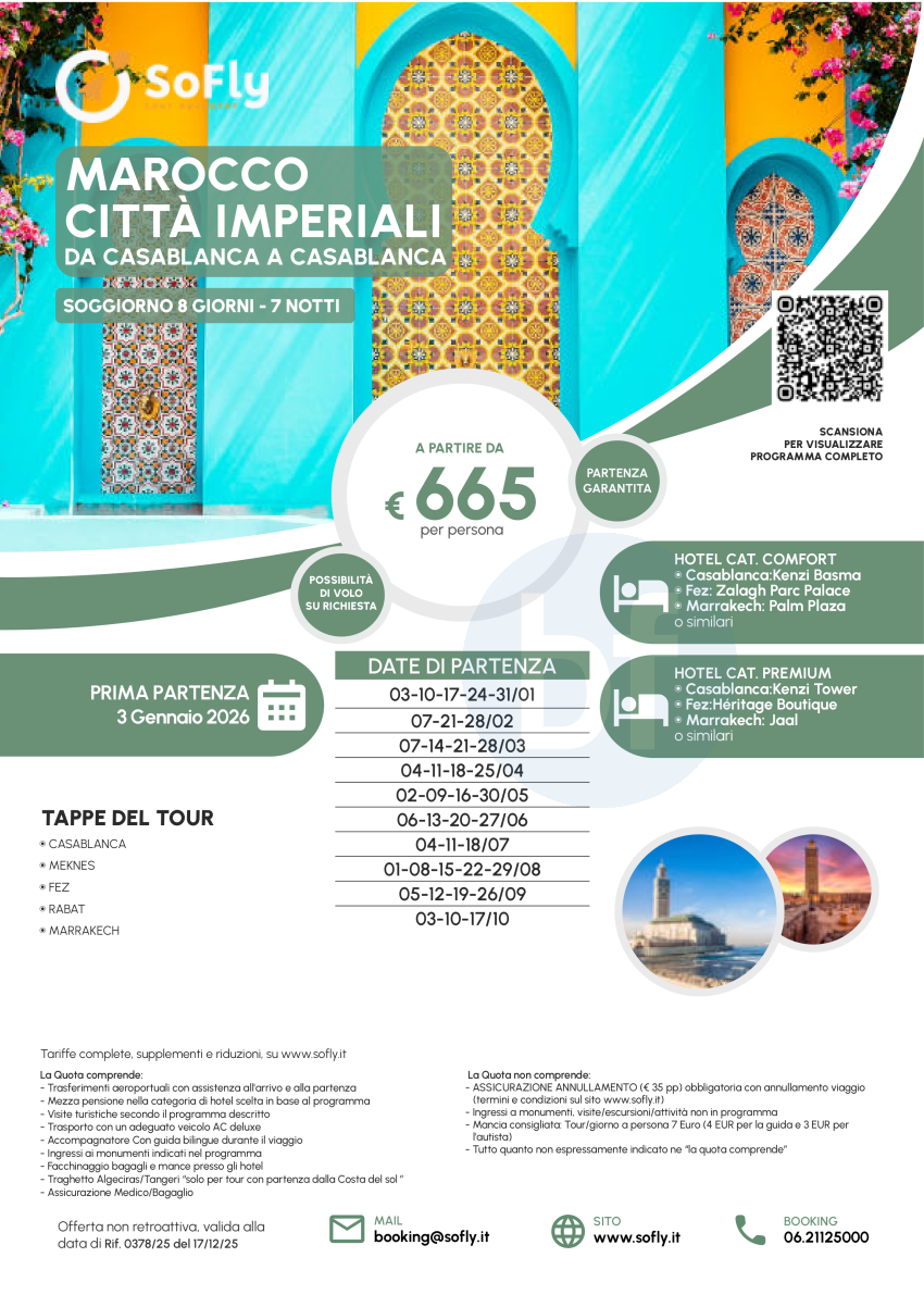 Tour Marocco Città Imperiali da Casablanca a Casablanca a partire da € 665 a persona