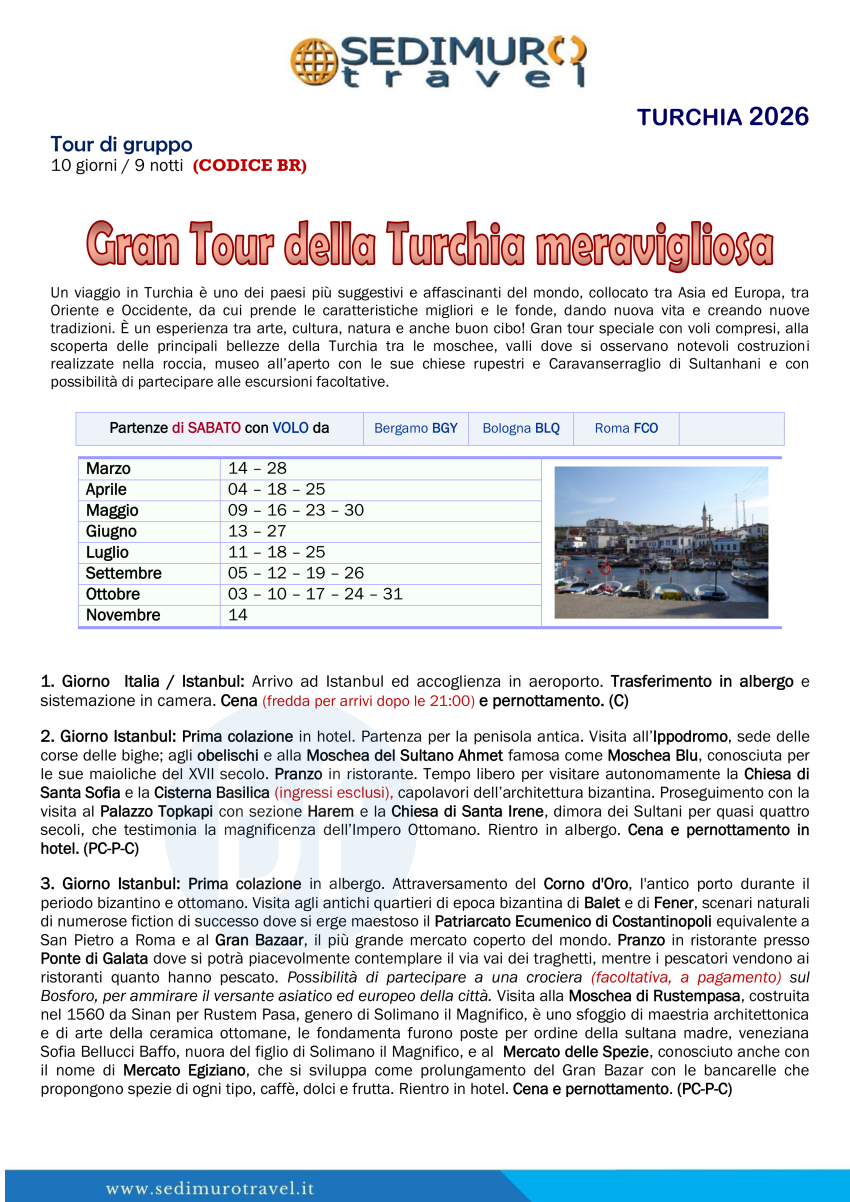 Gran Tour della Turchia meravigliosa con volo da BGY, BLQ e FCO di sabato 10 giorni